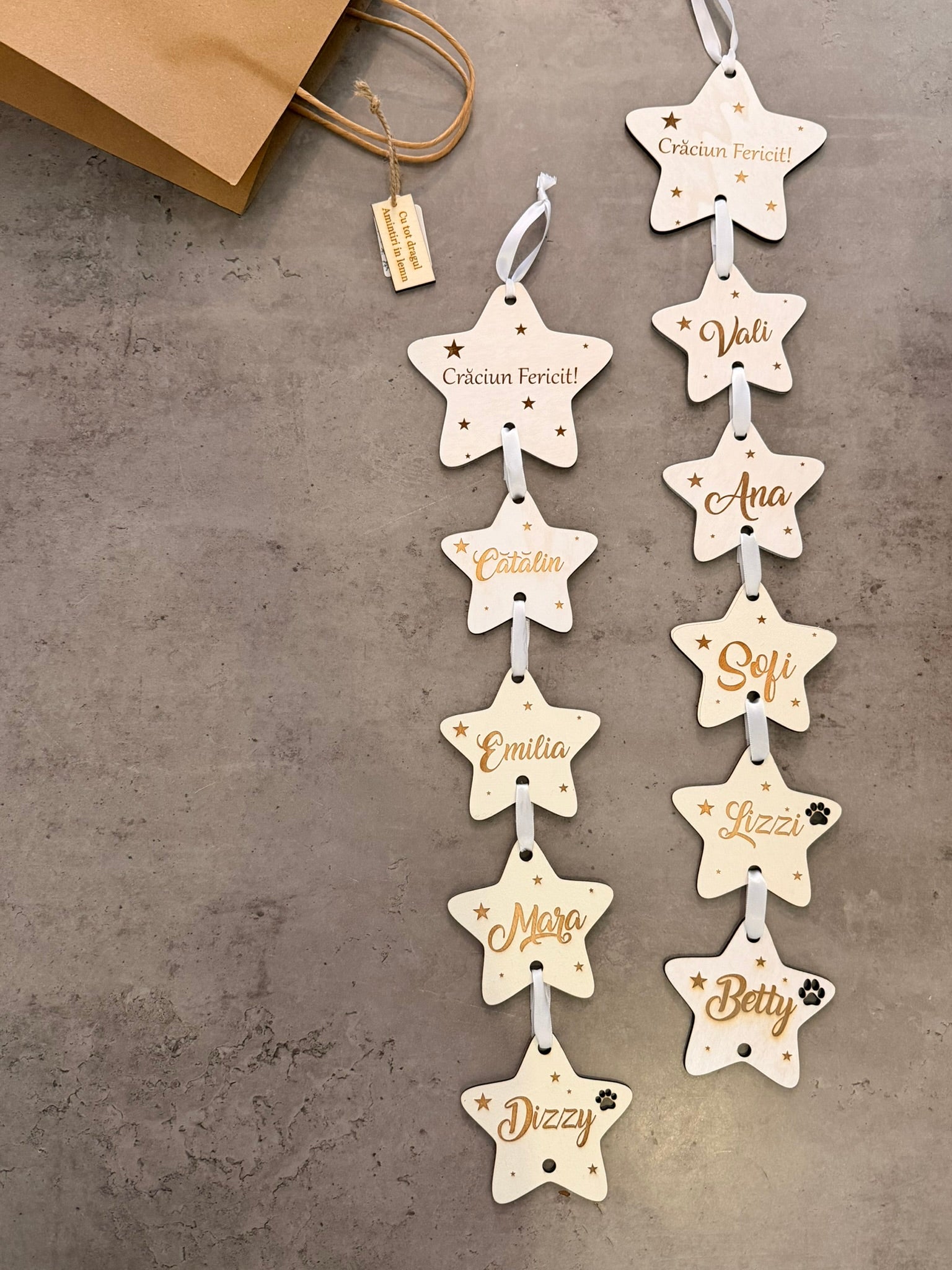 Fiecare steluță devine un mic simbol al iubirii, iar ansamblul transformă bradul într-o poveste de Crăciun personală, emoționantă și plină de căldură. O decorațiune specială, foarte căutată, perfectă pentru a celebra legătura dintre voi sau pentru a fi dăruită cuiva drag.