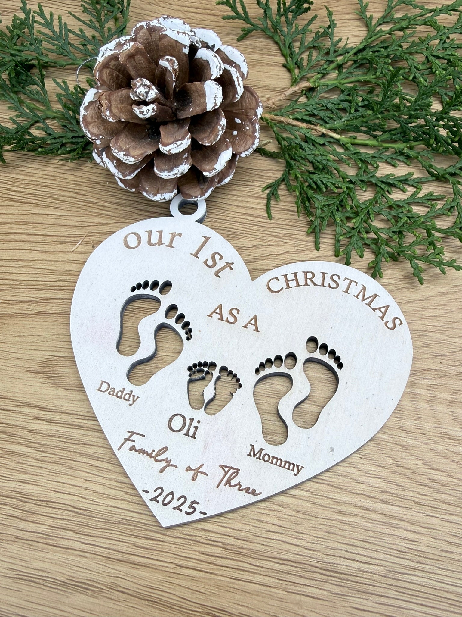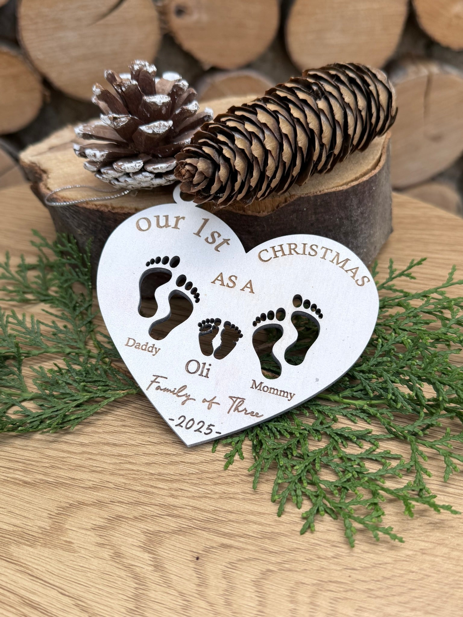 Personalizat cu numele sau detaliile dorite, ornamentul păstrează pentru totdeauna clipa în care inimile voastre au început să bată în ritmul a „trei”. Un simbol al iubirii, al începuturilor frumoase și al sărbătorilor trăite împreună.